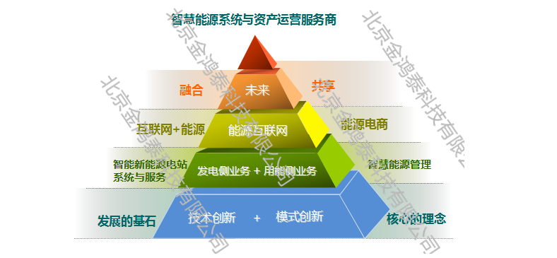 以能源供给侧和能源消费侧的智能化系统与运营服务解决方案为导向,从专注光伏拓展到风电、光热、水电、储能等多能清洁能源多能互补一体化领域,从单一的电能,拓展到以电、汽、冷、热、水、气等多种能源高效利用为目标,基于“能源流、信息流、业务流”的高度融合,借助于科学合理的监测、分配、转换、利用、节能等技术,为用户提供经济、节能、清洁、生态等多目标优化的智慧能源综合服务。